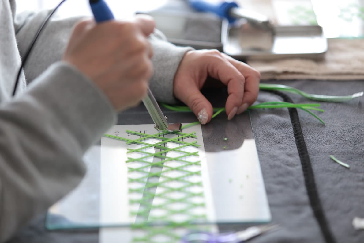 ホットリボンアートは、専用のリボンを熱で加工しながら、絵を描くように作品を作るアートです。